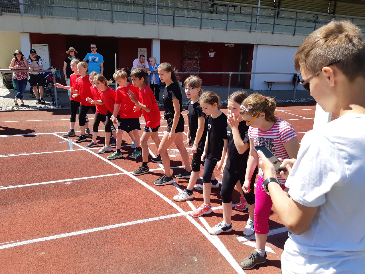- anschließend gemeinsame Erwärmung und Riegeneinteilung der Kinder im Stadion