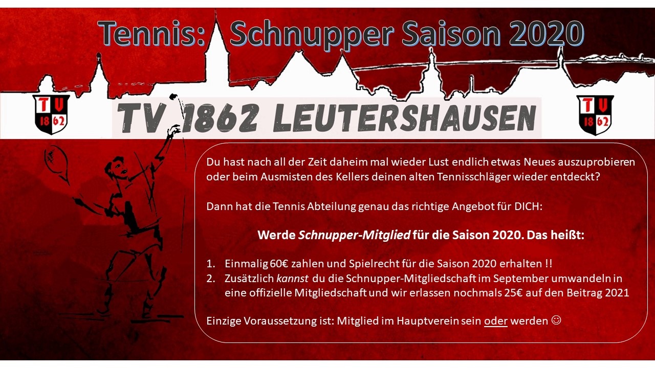 Aktuell geht das am besten auf unserer Tennisanlage. Daher gibt es für unsere Mitglieder und alle die es werden wollen eine einmalige Gelegenheit: